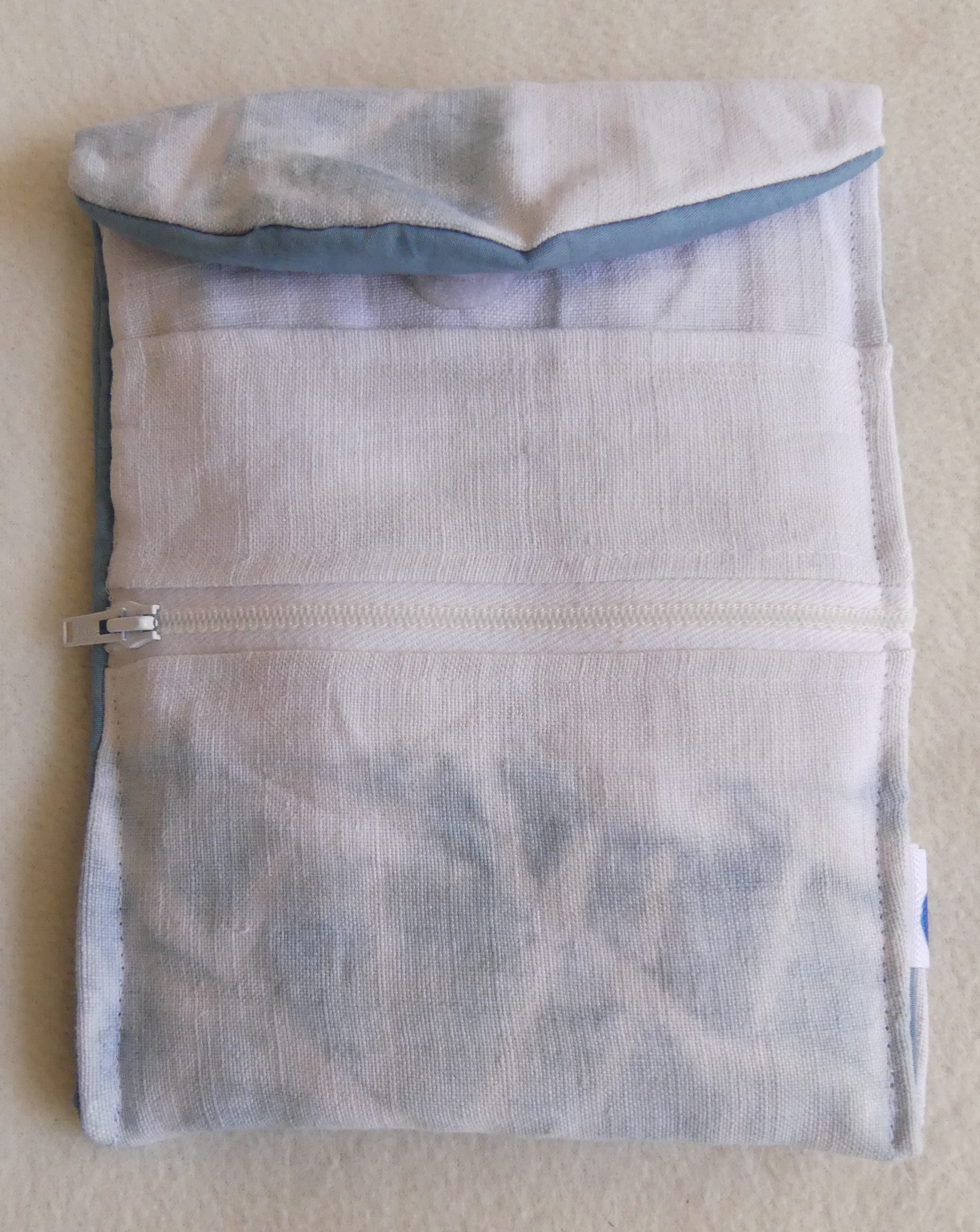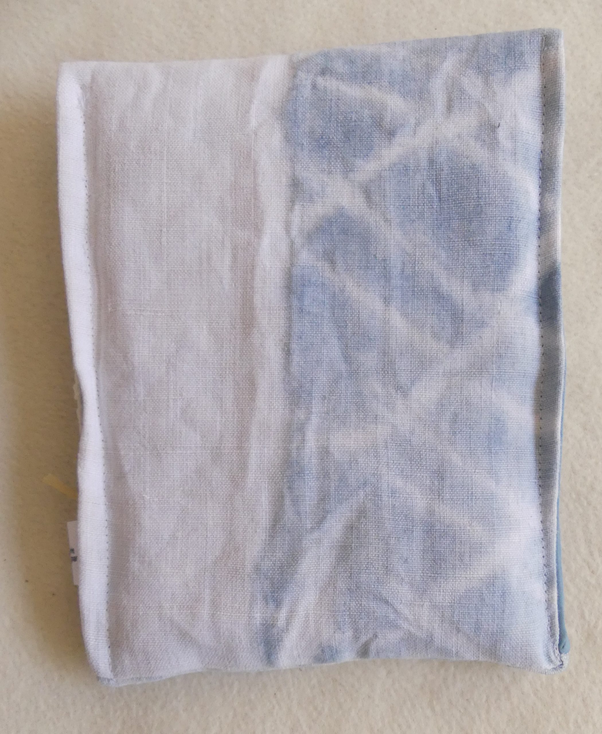 Housse de liseuse KOBO, en coton teintée avec de l’indigo bio. Poche sur le devant pour le chargeur. Motif obtenu par un pliage spécial : le shibori